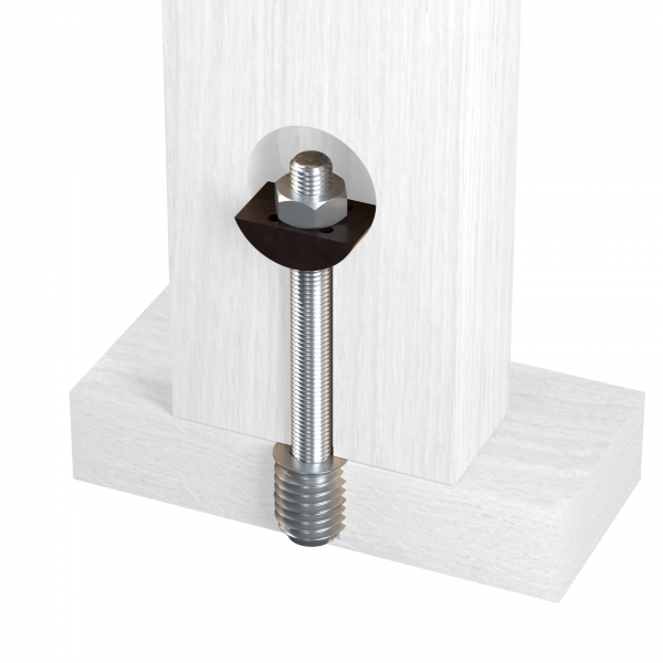 Zestaw umożliwia zamocowanie drewnianego słupka bazowego/pośredniego balustrady do stopnia drewnianego o grubości minimum 30mm