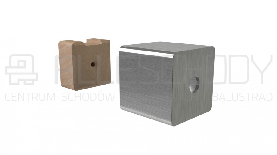Uchwyt czołowy poręczy drewnianej 40x40 INOX + adapter