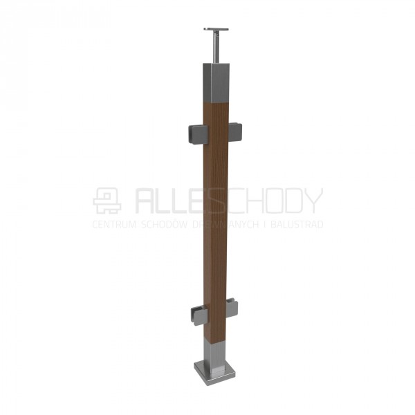 Słupek 50x50 z drewnem z uchwytami do szkła-szyby - poziomy