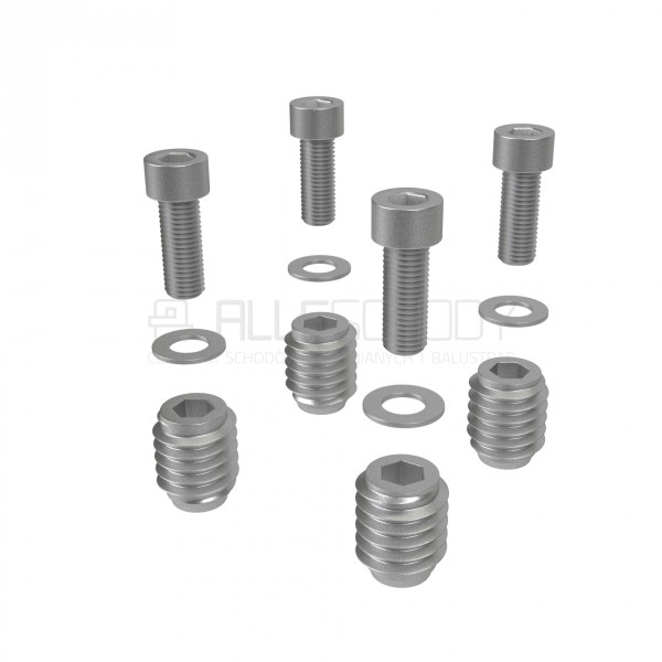 1 zestaw zawiera 4 śruby M8 z Mufą dwugwintową do mocowania słupków balustrady do podłoża drewnianego o grubości minimalnej 20mm